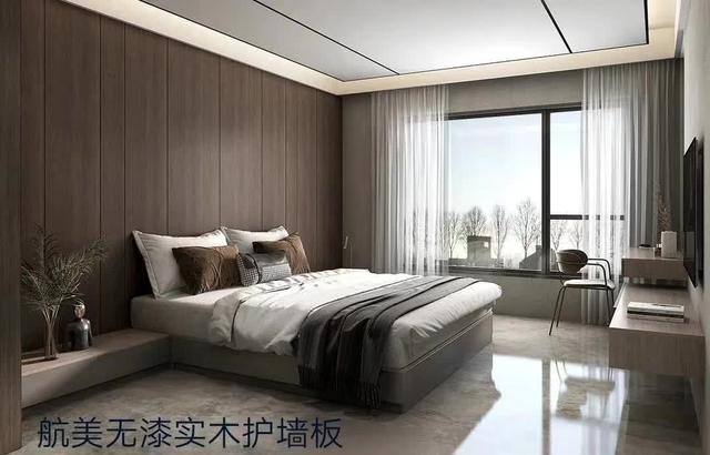 无漆实木护墙板极简风设计,在航美2.4万平工厂实现无漆板式的量化生产,高质量、高产能、高利润。