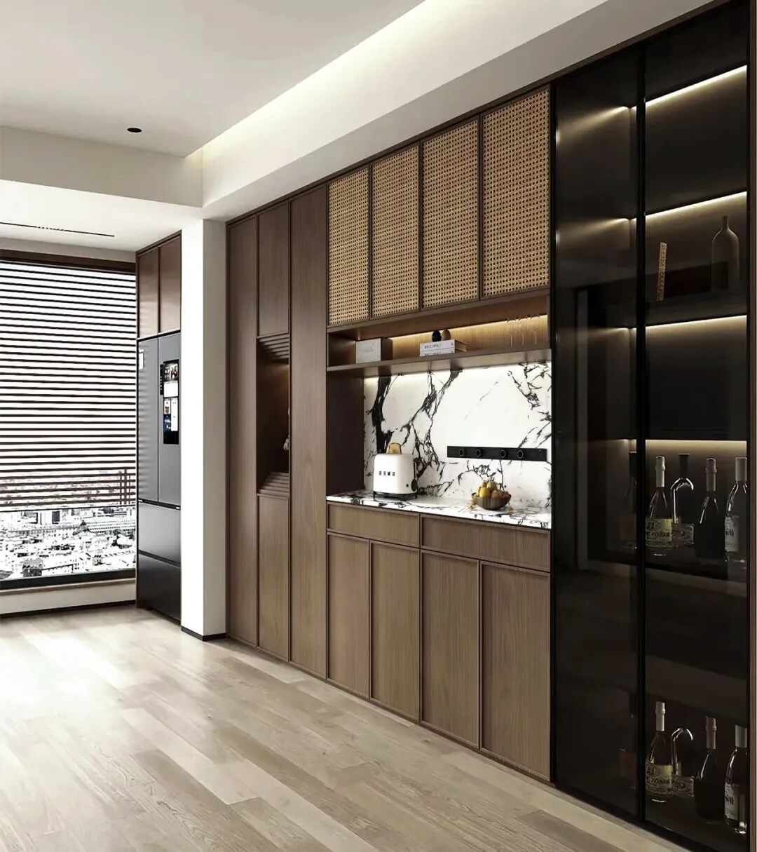 在传统的油漆实木家具生产中,都知道实木容易开裂变形。而航美拥有的新一代木材优化技术,获得国家发明专利,并确认为科学技术成果。让航美油漆纯实木基板在-40℃--150℃极端环境下,依然稳定;一门通顶2.8米高,不加拉直器。极大提升了实木家具的稳定性和美观度,使实木家具更具有竞争力。