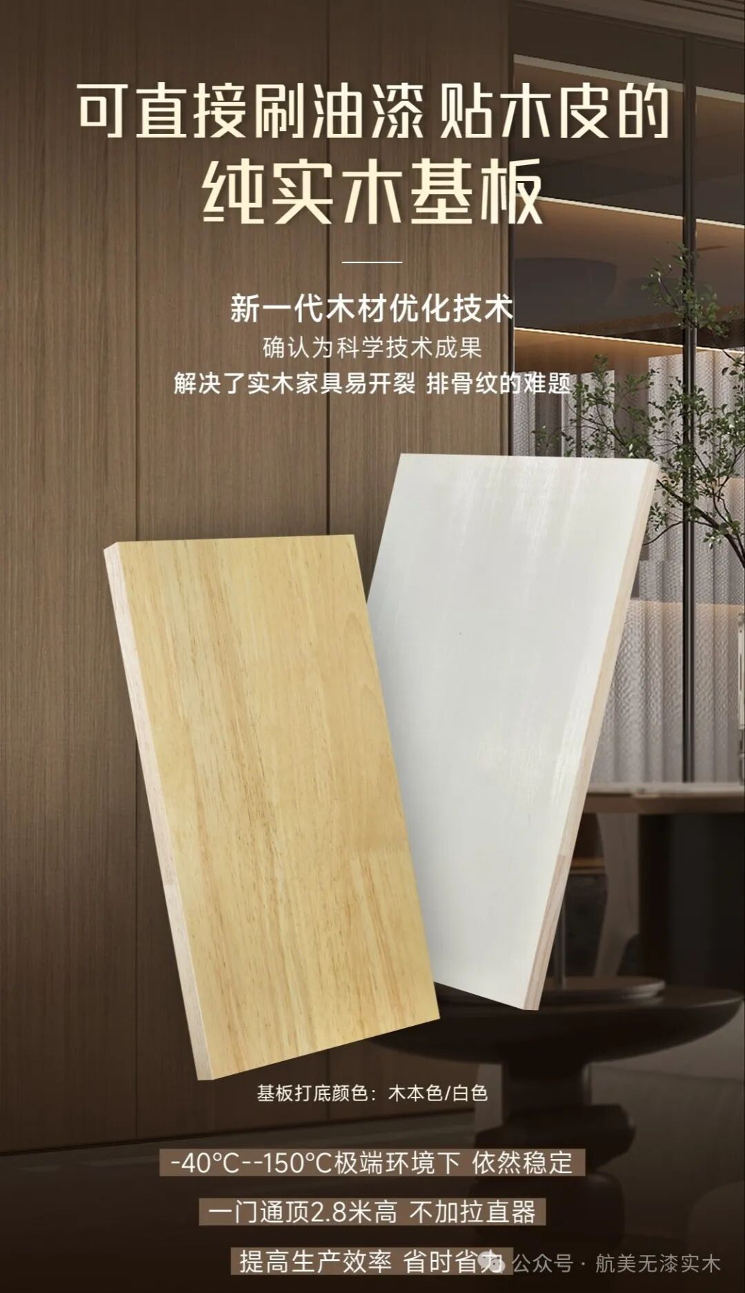 在传统的油漆实木加工中,基材打底工序是必不可少的一环,耗时耗力,增加了生产成本。而选择航美油漆纯实木基板,我们可以在上面直接刷油漆、贴木皮。省去了繁琐的基材打底工序,降低人工成本,是一款真正解决油漆实木家具痛点的差异化板材。